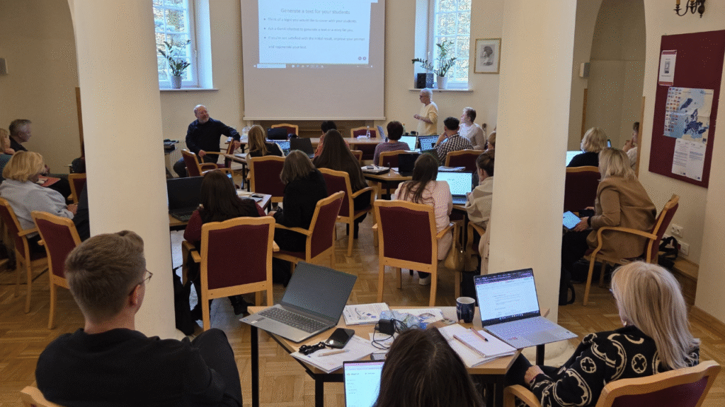 W dwudniowych warsztatach, które odbyły się 15 i 16 października w Centrum Szkoleniowym ORE w Sulejówku, udział wzięli przedstawiciele różnych środowisk edukacyjnych, pełniący funkcje nauczycieli konsultantów, dyrektorów oraz nauczycieli języków, głównie języka angielskiego, który był także językiem roboczym. Różnorodność doświadczeń w pracy oraz w poziomie wiedzy i praktyki w zakresie stosowania AI stworzyła przestrzeń do wspólnej i kreatywnej pracy.
