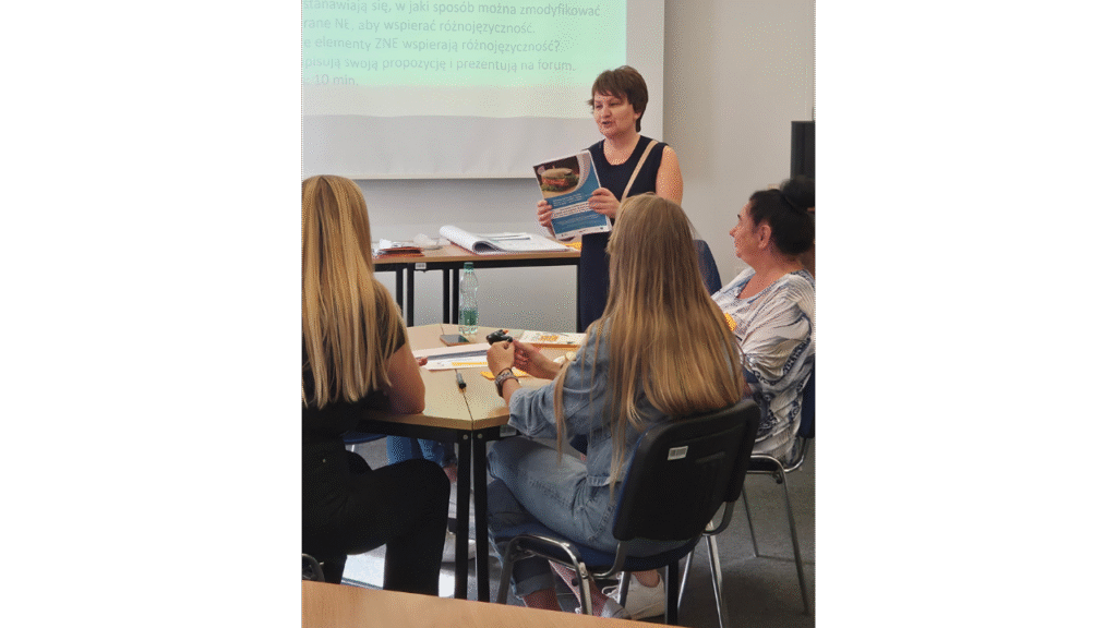 Uczestnicy warsztatów mieli także okazję popracować z trenerką MSCDN Jolantą Bilską-Sulimą nad planowaniem lekcji z wykorzystaniem ZPE i scenariuszy projektów interdyscyplinarnych opracowanych dla języków obcych. Warsztaty te, zatytułowane „Zestawy narzędzi edukacyjnych w praktyce – testujemy, adaptujemy, wdrażamy, aby wspierać różnorodność językową”, pozwoliły nauczycielom nie tylko poznać uniwersalny charakter narzędzi edukacyjnych, ale także wspólnie je przetestować i omówić możliwości ich adaptacji do specyfiki różnych przedmiotów i środowisk szkolnych.
