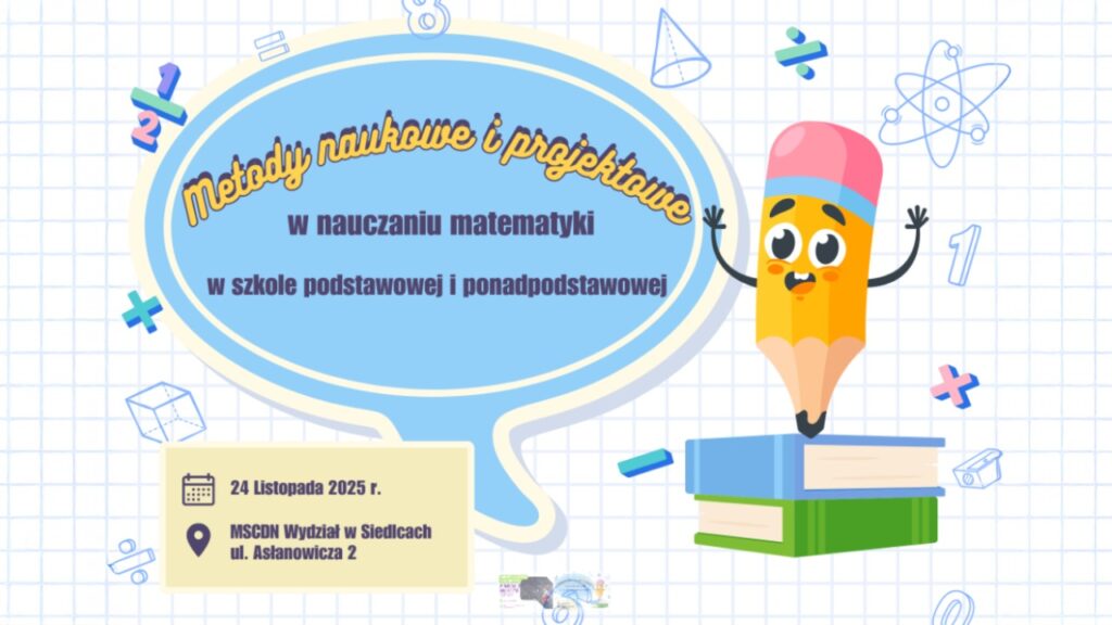 Szkolenie odbędzie się 24 listopada br., w godzinach 15.30–18.45, w Mazowieckim Samorządowym Centrum Doskonalenia Nauczycieli w Siedlcach (ul. Asłanowicza 2). Jest przeznaczone dla nauczycieli matematyki szkół podstawowych i ponadpodstawowych.