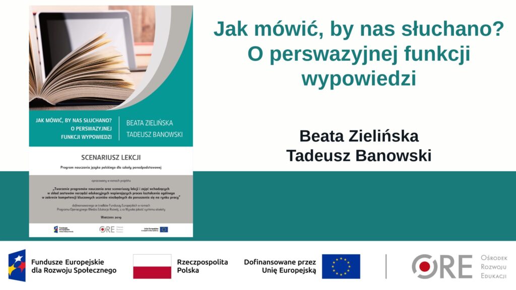 W tym kontekście nieocenionym wsparciem są Zestawy Narzędzi Edukacyjnych, a wśród nich scenariusz Beaty Zielińskiej i Tadeusza Banowskiego „Jak mówić, by nas słuchano? O perswazyjnej funkcji wypowiedzi”. To materiał, który uczy, jak skutecznie przekonywać, argumentować i analizować przekazy, z którymi młodzi ludzie spotykają się każdego dnia: w szkole, mediach społecznościowych czy debacie publicznej.
