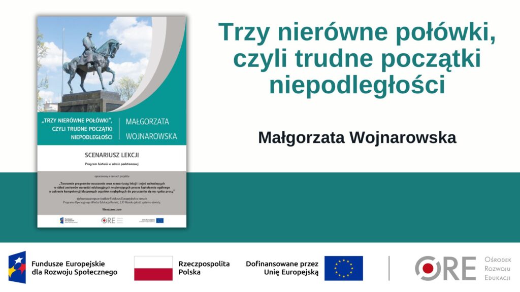 Zestawy Narzędzi Edukacyjnych stanowią nie tylko pomoce dydaktyczne, lecz także zaproszenie do pogłębionej refleksji nad historią, która nieprzerwanie wpływa na kształtowanie naszej tożsamości narodowej. Scenariusz „Trzy nierówne połówki, czyli trudne początki niepodległości” przypomina, że odzyskanie przez Polskę niepodległości w 1918 roku było zaledwie początkiem długiego i złożonego procesu budowania suwerennego państwa, a nie – zwieńczeniem tego wysiłku.