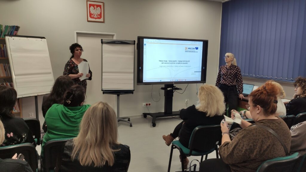 5 listopada br. odbyło się, pierwsze z cyklu, stacjonarne szkolenie w MSCDN w Płocku. Poświęcone ono było praktycznym aspektom wspierania uczniów w wyborze ścieżki edukacyjnej i zawodowej. Spotkanie miało charakter warsztatowy i skupiło się na rozwijaniu kompetencji doradczych w zakresie pracy z uczniami kończącymi szkołę podstawową oraz z ich rodzicami.