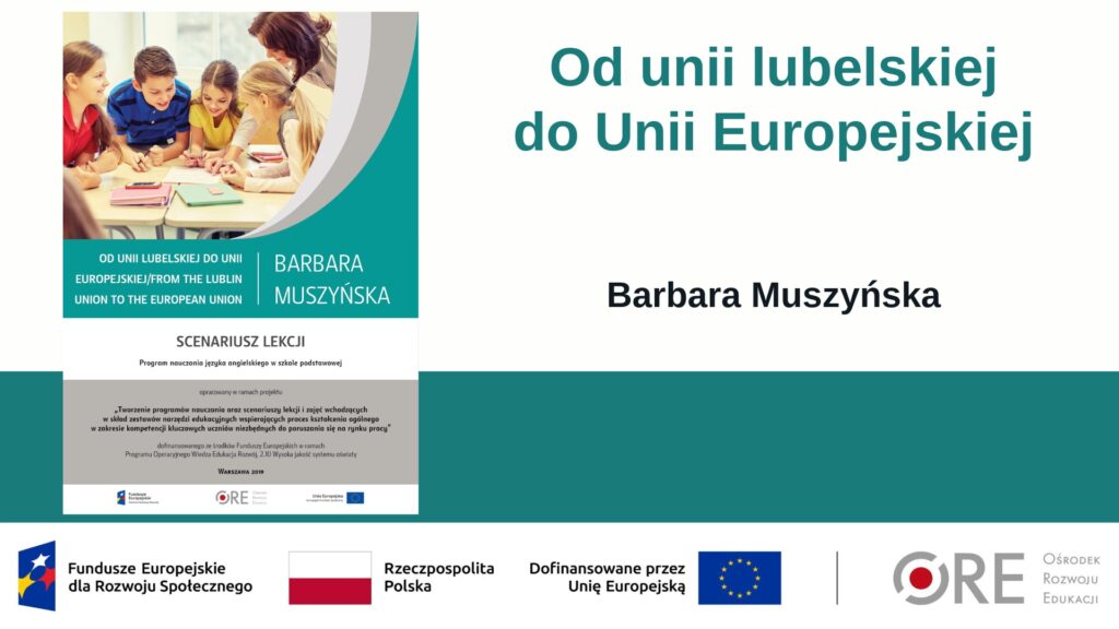 Scenariusz „Od unii lubelskiej do Unii Europejskiej” autorstwa Barbary Muszyńskiej to innowacyjna lekcja realizowana metodą „soft CLIL”, która łączy naukę języka obcego z treścią historyczną i społeczną. Uczniowie poznają historię integracji europejskiej, od unii lubelskiej po współczesną Unię Europejską, jednocześnie rozwijając kompetencje językowe i przedmiotowe. Lekcja promuje aktywne formy pracy, takie jak projekt, debata, burza mózgów, analiza SWOT i praca grupowa, co sprzyja realizacji celów programowych z historii, wiedzy o społeczeństwie i języka obcego. Ten scenariusz może być również wykorzystany do pracy na lekcjach niejęzykowych.