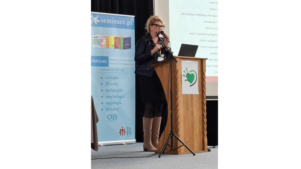 Następnie ważny temat „Wpływ traumy wielopokoleniowej na zjawisko wykluczenia społecznego” przedstawiła uczestnikom wydarzenia Małgorzata Wojsznarowicz, psycholog MOW w Trzcińcu.