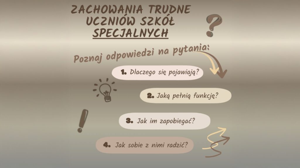 - Radzenie sobie z zachowaniami trudnymi uczniów ze spektrum autyzmu.