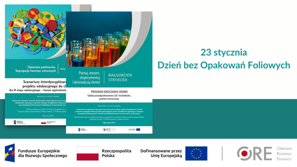 Z okazji Dnia bez Opakowań Foliowych zachęcamy nauczycieli do wykorzystania scenariusza interdyscyplinarnego projektu edukacyjnego do chemii „Tajemnice polimerów. Segregacja tworzyw sztucznych”. Został on opracowany przez Małgorzatę Stryjecką do III etapu edukacyjnego w szkole ponadpodstawowej (poziom rozszerzony).