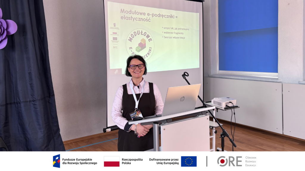 W tym kontekście szczególnie ważny okazał się temat higieny cyfrowej – świadomego, zrównoważonego korzystania z technologii w edukacji. Właśnie tej kwestii dotyczyło wystąpienie ekspertki naszego projektu Dominiki Gaponiuk, zatytułowane „ZPE i modułowe e-podręczniki jako przykład zdrowego podejścia do technologii”.