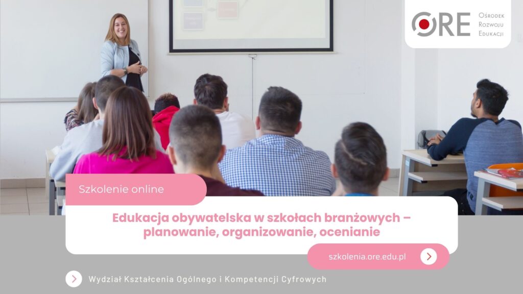 Zapraszamy nauczycieli konsultantów, doradców metodycznych i nauczycieli edukacji obywatelskiej na szkolenie „Edukacja obywatelska w szkołach branżowych – planowanie, organizowanie, ocenianie”.
