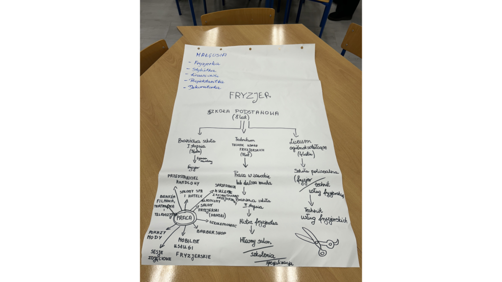 Wiedzę zdobytą podczas części teoretycznej doradcy wykorzystali w części praktycznej. Na zajęciach analizowali case studies – przypadki uczniów o zróżnicowanych zainteresowaniach, wiedzy i umiejętnościach. Potem opracowywali propozycje ścieżek edukacyjno-zawodowych dostosowanych do zainteresowań i predyspozycji młodzieży. Na koniec dyskutowali na temat możliwości rozwoju młodych ludzi oraz indywidulnego podejścia doradcy zawodowego do każdego ucznia.
