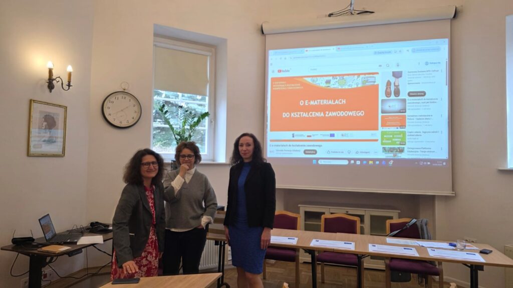 Przedstawicielki projektu „Opracowanie koncepcji i odbiór e-materiałów edukacyjnych ukierunkowanych na wspieranie kształcenia kompetencji zawodowych” – kierownik projektu Joanna Saska-Dymnicka, ekspert ds. dostępności treści internetowych (WCAG) Barbara Wałecka oraz ekspert ds. obudowy dydaktycznej i multimediów Beata Służalska – poprowadziły warsztaty.