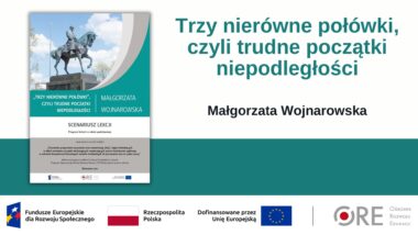 Zestawy Narzędzi Edukacyjnych stanowią nie tylko pomoce dydaktyczne, lecz także zaproszenie do pogłębionej refleksji nad historią, która nieprzerwanie wpływa na kształtowanie naszej tożsamości narodowej. Scenariusz „Trzy nierówne połówki, czyli trudne początki niepodległości” przypomina, że odzyskanie przez Polskę niepodległości w 1918 roku było zaledwie początkiem długiego i złożonego procesu budowania suwerennego państwa, a nie – zwieńczeniem tego wysiłku. Gdy po 123 latach zaborów Polska wracała na mapę Europy, była jak mozaika złożona z trzech różnych […]